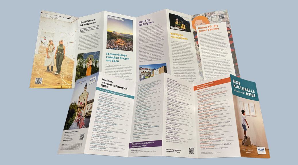 Für die Kärnten Werbung durfte die Agentur Gedankenschmiede den neuen Kulturfolder 2026 konzipieren und textlich umsetzen. Im Mittelpunkt stand die Frage, wie sich das vielfältige Kulturangebot des Landes klar strukturieren und für Gäste wie Einheimische übersichtlich aufbereiten lässt.